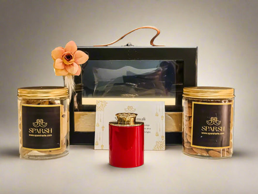Buy Luxury Acrylic Gift Box – Almonds, Scented Candle & Premium Mukhwas for Festive Gifting